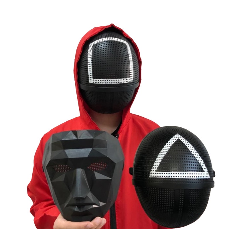 Hot Squid Game Mask Movie Theme Boss Masked Man Plastic Mask Red Guard Dressup Triangle Cube Props Adult Role Playing Shopee Philippines