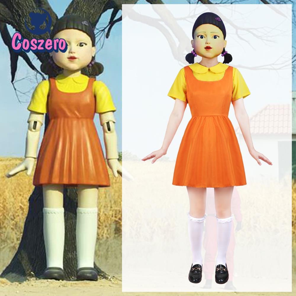Squid Game Robot Doll Star Cosplay Dresses Scary Yellow Little Girl Kids Short Sleeve Halloween Costume Squid Game Doll Set Parent Child Outfit Shopee Malaysia