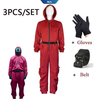 3 Pcs Set Squid Game Red Jumpsuit Belt Black Gloves Boss Mask Squid Game Cosplay Costume Toy Halloween Party Prop Gm Shopee Philippines